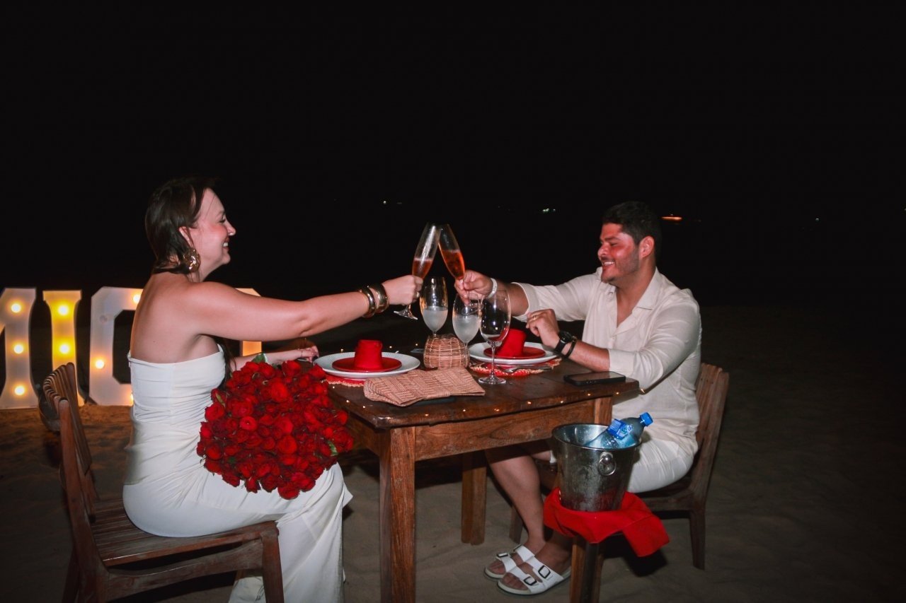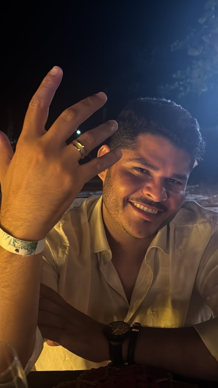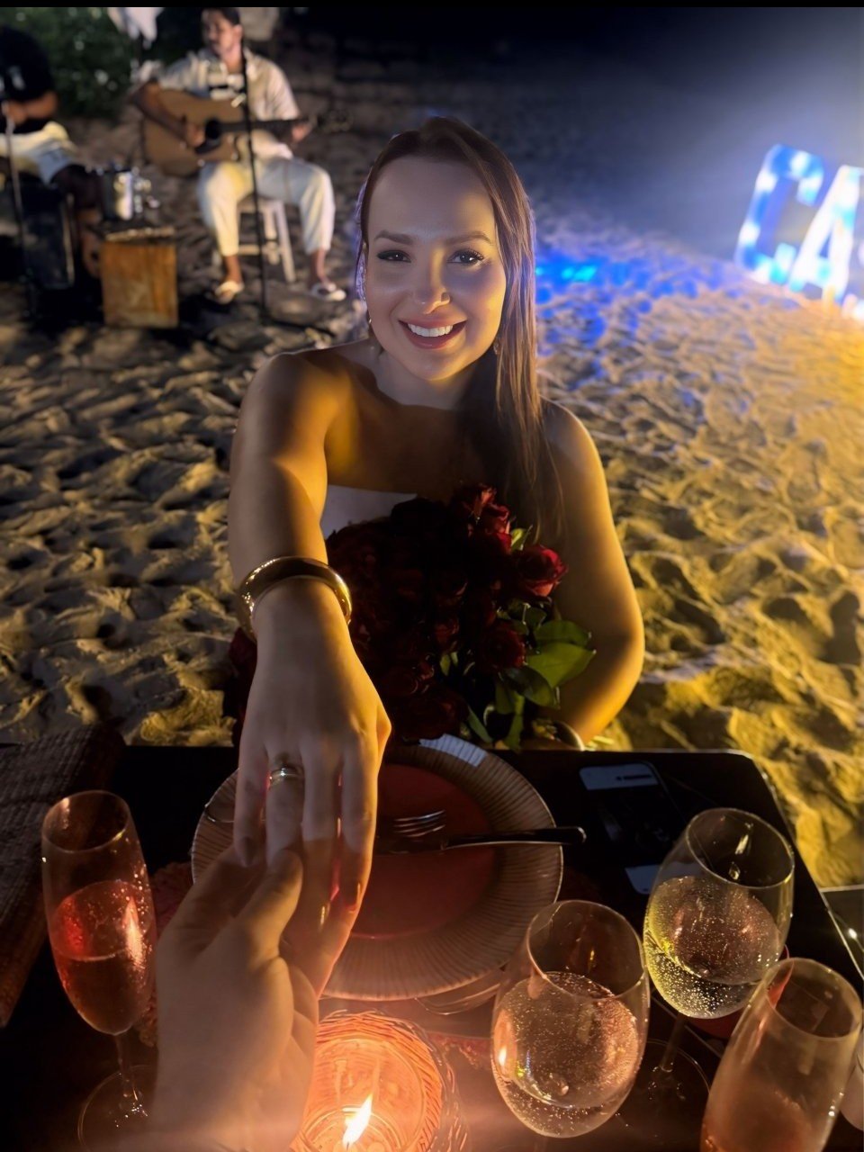 Nosso noivado será celebrado em um jantar intimista, ao lado de familiares e amigos queridos, em uma noite pensada para o encontro, a conversa e a celebração do amor que nos une.
